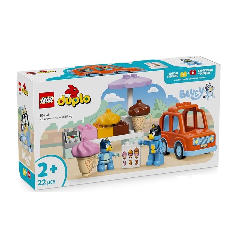 ¡Sumerge a tu preescolar en divertidos juegos con el juguete Excursión a la Heladería con Bluey (10458)! Los bebés practican el juego imaginativo mientras emprenden una aventura LEGO® DUPLO® usando este set para recrear escenas de la serie Bluey.