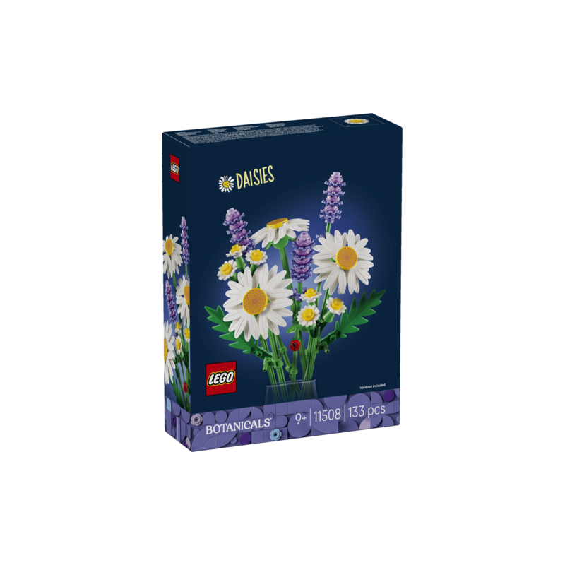 ¡Haz florecer la imaginación de tu peque con el set de construcción LEGO® Botanicals Margaritas (11508)! Niñas y niños a partir de 9 años se lo pasarán genial creando este ramo lleno de dulzura que incluye 3 margaritas grandes, 2 tallos con margaritas pequeñas, 3 relajantes flores de lavanda y vibrantes tallos verdes. El ramito LEGO ofrece el equilibrio perfecto de alegría y tranquilidad. Está formado por flores de gran realismo y tiene un detalle que encantará a los jóvenes constructores: unaadorable mariquita de la suerte en uno de los tallos de lavanda. Cuando lo terminen, podrán colocar en su habitación su ramo de flores LEGO, un objeto de decoración de agradable estética que nunca se marchita ni necesita riego. Un regalo ideal parael cumpleaños de niñas, niños y preadolescentes, así como un divertido obsequio para amantes de la naturaleza, este ramo de flores LEGO cautivará a los apasionados de las flores de todas las edades y podrá conservarse para siempre. Contiene 133 piezas.