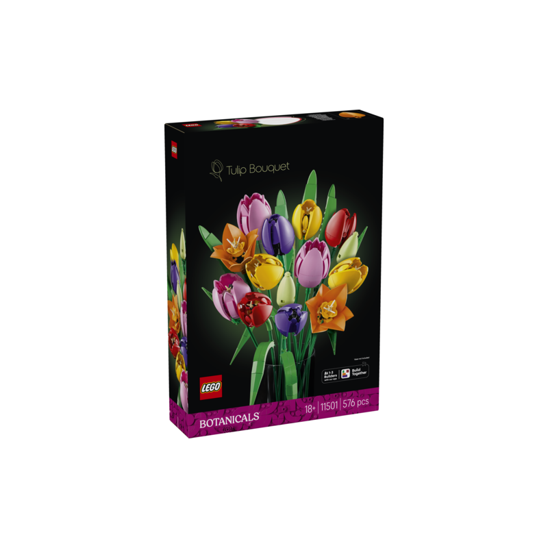 Coloca una magnífica pieza de decoración floral en tu hogar con el kit de construcción para adultos LEGO® Botanicals Ramo de Tulipanes (11501). Este ramo LEGO, que captura la alegría y el optimismo de la primavera, cuenta con 5 variedades de tulipanes en diversas fases de floración. Sumérgete en la belleza de las flores mientras creas vibrantes capullos verdes, tulipanes violetas cerrados y tulipanes rojos, amarillos y rosas abiertos, además de hojas verdes que realzan su realismo. El set incluye tallos ajustables que te permiten decidir la longitud y la posición de cada tulipán para crear un arreglo LEGO personalizado. Una vez terminado, el divertido proyecto se convierte en una impresionante pieza de decoración floral que aportará color a cualquier espacio. Un regalo ideal para mujeres y hombres en cualquier ocasión, este set está disponible en la app LEGO Builder, donde los aprendices de floristas pueden acceder a instrucciones de construcción digitales. Contiene 576 piezas.