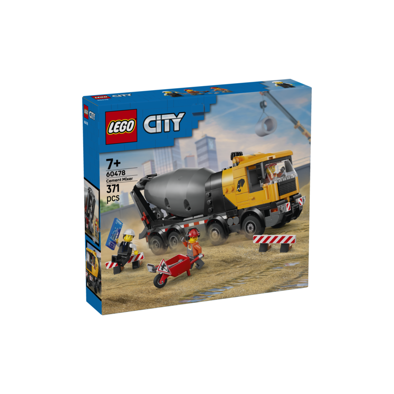 A los fans de los juguetes de construcción les encantará la Hormigonera LEGO® City (60478) para mayores de 7 años. Este detallado camión hormigonera con 8 neumáticos de goma incorpora un gran tambor equipado con un sistema de tornillo de Arquímedes. Los peques pueden girar una rueda para mezclar y verter el cemento LEGO por la canaleta ajustable, igual que si se tratara de cemento real. El gran camión de juguete cuenta también con cabina basculante para acceder al motor. Incluye accesorios, como una carretilla, una señal vial y 2 barreras, además de minifiguras de un conductor, un obrero y un arquitecto. Este modelo LEGO City es un estupendo regalo de cumpleaños para niños y niñas de 7 años a los que les fascinan los vehículos de obra. Combina este set con otros de la gama LEGO City (a la venta por separado) para vivir aventuras aún más grandes. Los peques podrán disfrutar de una intuitiva experiencia de construcción de este vehículo con la app LEGO Builder. Contiene 371 piezas.