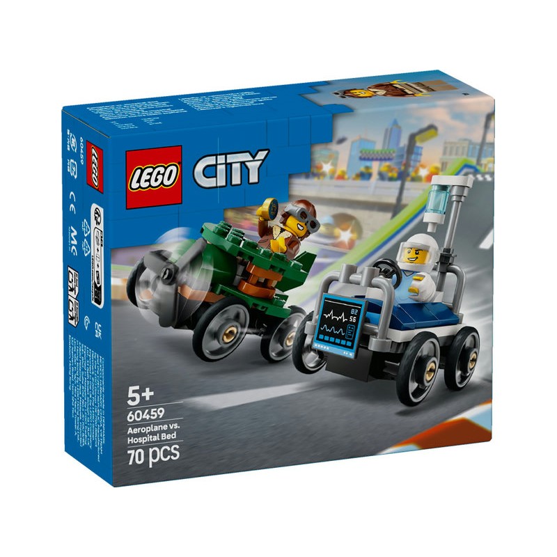 LEGO® City 60459 - Pack de Coches de Carreras: Avión vs. Cama de Hospital