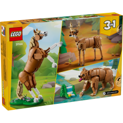 Los niños tienen 3 diferentes opciones de construcción con los mismos ladrillos: un caballo LEGO® articulado, un oso articulado con un pequeño modelo de una cascada o un elegante ciervo articulado. Las 3 figuras de animales de este set transformable son también divertidos y creativos regalos para niños.