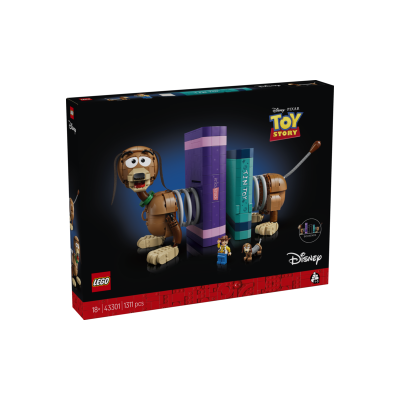 ¡Dile al mundo que te encantan las películas Disney y Pixar y sus personajes de fantasía con el set de construcción LEGO® ǀ Disney y Pixar Toy Story: Sujetalibros de Slinky (43301)! Esta pieza decorativa con forma de dachshund, diseñada para adultos y fans a partir de 18 años, incluye a Slinky con cabeza giratoria, orejas de tela y patas móviles, así como 2 libros que esconden algunos guiños: el pequeño tiene una función en el lomo que revela una figura LEGO ǀ Disney y Pixar de Slinky. El grande tiene 2 funciones: gira una rueda y descubrirás una minifigura de Woody o quita parte de la tapa para encontrar más sorpresas. Este dachshund sujetalibros es un regalo perfecto para cualquier amante de los perros. Exponlo en casa o la oficina para mostrar tu pasión por los personajes de Toy Story, la película Disney y Pixar. Y, a medida que construyes, la app LEGO Builder te permite acercar y girar tus sets en 3D, guardarlos en un solo lugar y consultar tu progreso. El set contiene 1311 piezas.