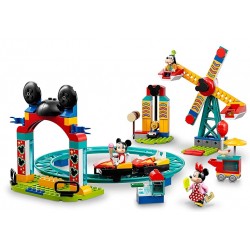 - Diversión en una caja: El set incluye una noria, una montaña rusa y una prueba de fuerza, minifiguras de Mickey Mouse, Minnie Mouse y Goofy, 2 modelos más pequeños y accesorios que estimulan el juego