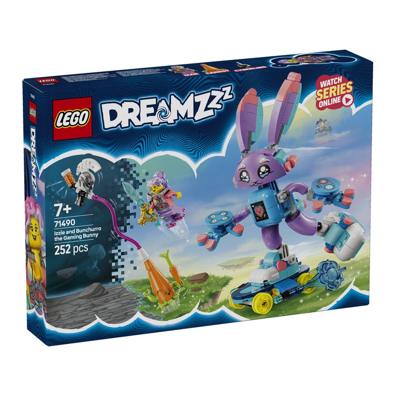 ¡Sueña una nueva aventura con el set de construcción LEGO® DREAMZzz™ Izzie y Bunchurro el Conejo Jugón (71490)! Este juguete, inspirado en la emocionante serie para televisión, anima a las niñas y los niños a partir de 7 años a usar su imaginaciónpara ayudar a la heroína Izzie a salvar a una Zanahoria Dreamling de las garras de un Cyberling.