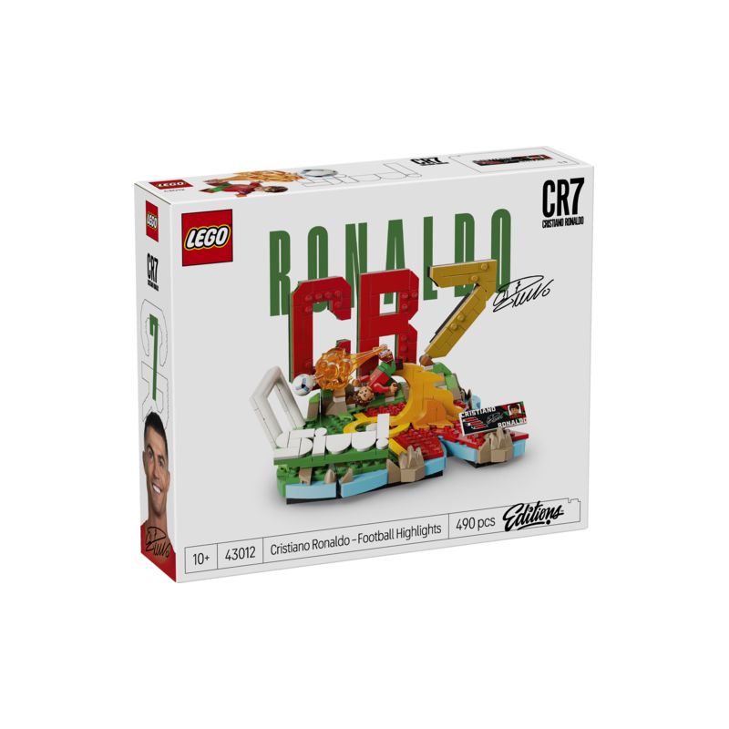 Rinde homenaje a un emblemático astro del fútbol con el set de construcción LEGO® Editions Cristiano Ronaldo: Fenómenos del Fútbol (43012) para niños, niñas y aficionados al deporte a partir de 10 años. Los peques se sumergirán en la acción del fútbol mientras crean este modelo de exposición dedicado a Cristiano Ronaldo. La base tiene la forma de su inicial y los colores de su selección, Portugal, así como un gran CR7, su icónica sigla. Una minifigura de Cristiano Ronaldo da vida al set, que incluye también una placa coleccionable con sus estadísticas como jugador y su autógrafo, además de emocionantes referencias a sus orígenes y trayectoria. Una vez terminado, los fans podrán convertir el modelo en un original elemento decorativo inspirado en el fútbol. Este creativo juguete es un estupendo regalo para peques y futboleros. Las instrucciones están disponibles en versión digital en la app LEGO Builder, donde los futuros cracs pueden girar sus creaciones en 3D. Contiene 490 piezas.
