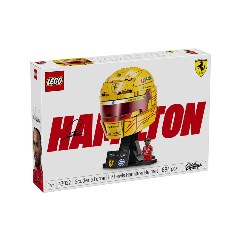 Rinde homenaje a una leyenda británica del automovilismo y crea un fabuloso objeto de colección con el set LEGO® Editions Scuderia Ferrari HP: Casco de Lewis Hamilton (43022) para aficionados a la Formula 1® a partir de 14 años. Los entusiastas delos coches se lo pasarán genial construyendo el modelo de exposición, que luce el amarillo Módena de Ferrari. Además de montones de detalles, lleva decoraciones impresas, como el número de piloto de Lewis, y trae una placa con su firma. Viene con una m inifigura de Lewis Hamilton con su mono rojo de competición de la Scuderia Ferrari HP. Una vez terminado, se convierte en una impresionante decoración que los fans pueden exponer en solitario o junto a los demás cascos de F1® LEGO (a la venta por separado). Quédatelo o haz feliz a un adolescente o un amante del motor regalándoselo por su cumpleaños. Está disponible en la app LEGO Builder, donde puedes hacer paradas en boxes para ver tu progreso y girar tus creaciones. El set contiene 884 piezas.