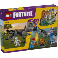 El juego reproduce los primeros desafíos que se encuentran los jugadores en el videojuego LEGO Fortnite Odyssey. Los niños y las niñas se divertirán construyendo la fogata, una mesa de trabajo y ruinas que pueden deconstruir y reconfigurar. Cuenta también con una figura de una Llama de suministros y una figura de un lobo con cola y patas móviles. La acción cobra vida con las minifiguras de Banano, Bujía y un esqueleto, que portan armas.
