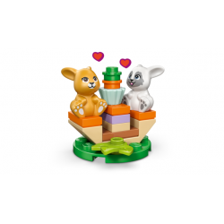 Entra de un saltito en el mundo de las historias con el juguete LEGO® Friends Hotel de Conejitos de Heartlake City (42679) para niñas y niños a partir de 5 años. Diseñado para fomentar el juego simbólico, incluye 2 minipersonajes y 2 conejitos de juguete. El encantador set cuenta con un sinfín de detalles divertidos, como la puerta especial para los conejitos y el simpático cartel. Dentro hay una alfombra con forma de zanahoria, una zona para dormir con camas y una lista para registrar la entrada y la salida de los conejitos del hotel. Fuera hay asientos donde los conejitos pueden tomar un cupcake de zanahoria. También encontrarás otros elementos que animan a los peques a cuidar de las mascotas, como un cepillo, un ovillo, comida y agua para los conejitos, y una pala para recoger su popó. Este set es un regalo ideal para niñas y niños amantes de los animales, que podrán disfrutar de una intuitiva aventura de construcción con la app LEGO Builder e instrucciones 3D. Contiene 161 piezas.