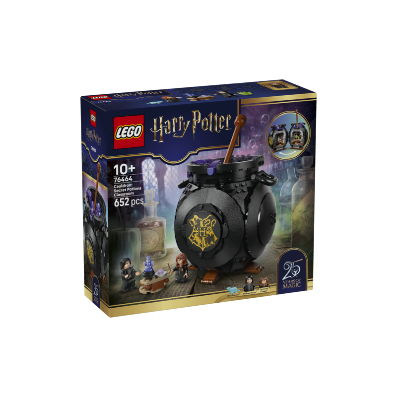 Regala a tu peque un hechizante set de construcción de juguetes LEGO® Harry Potter™ (76464) para exponer y jugar: un caldero mágico con un aula de pociones secretas en su interior. Mueve el mezclador y descubrirás el aula, con mesas desmontables, ladrillos LEGO que representan ingredientes para preparar pociones y también frascos. Recrea una clase de Pociones de Hogwarts™ con las minifiguras del Profesor Snape™ y Hermione Granger™. Y busca el Patronus™ nutria de Hermione, perteneciente a la colección de Patronus creada para celebrar el 25.º aniversario de LEGO Harry Potter (en sets a la venta por separado), así como 1 retrato de Hogwarts (de los 14 que componen la colección). El caldero construible se puede convertir en un divertido objeto de decoración después de cada sesión de juego o en un llamativo adorno de Halloween. Regala este versátil kit a niñas, niños y fans de Harry Potter a partir de 10 años. Y construye con confianza usando la app LEGO Builder. El set contiene 652 piezas.