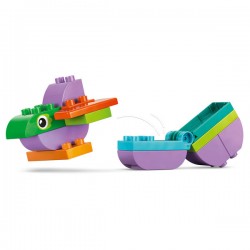 Este set LEGO DUPLO 3en1 para bebés, con bloques fáciles de manipular que se separan sin dificultad, les enseña a perseverar, concentrarse e imaginar mientras construyen y reconstruyen sus creativos animales de juguete una y otra vez. Contiene 108 piezas.