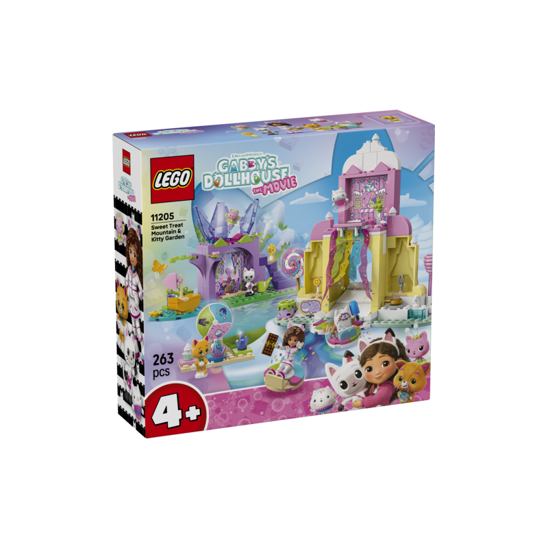 El juguete de construcción Montaña de Dulces y Jardín de Gatitos (11205) es un imaginativo set LEGO® basado en el juego simbólico y con infinidad de figuras LEGO de personajes de La casa de muñecas de Gabby: una idea de regalo perfecta para niñas y niños a partir de 4 años.