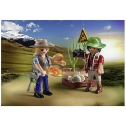 Contenido: Figuras: 1 hombre, 1 mujer; Accesorios: 1 placa base con rama y 2 arbustos, 1 elemento de tierra para excavar, 1 señal de advertencia, 1 caja de artesanía con equipo de explorador, 1 lupa, 1 caja con fósiles