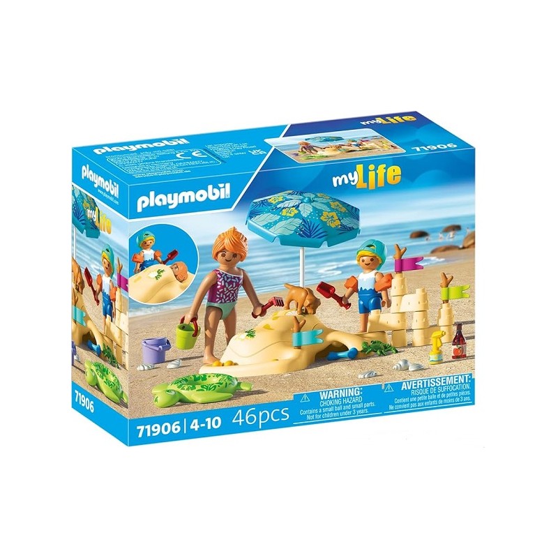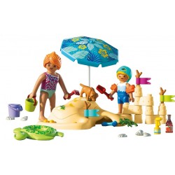 ¡Es día de playa con PLAYMOBIL! Los niños y niñas pueden construir el castillo de arena de sus sueños utilizando los elementos personalizables, jugar a las canicas en el mini canal e incluso enterrar una figura en la arena. Las banderas y la sombrilla se pueden colocar alrededor de la playa para que el juego cambie constantemente. El producto incluye un perro juguetón, un cangrejo curioso y un montón de accesorios de playa, desde conchas y cubos hasta un aro para nadar y crema solar. Con tantos detalles divertidos, este colorido producto PLAYMOBIL es perfecto para vivir aventuras soleadas e imaginativas llenas de creatividad, risas y sorpresas junto al mar.