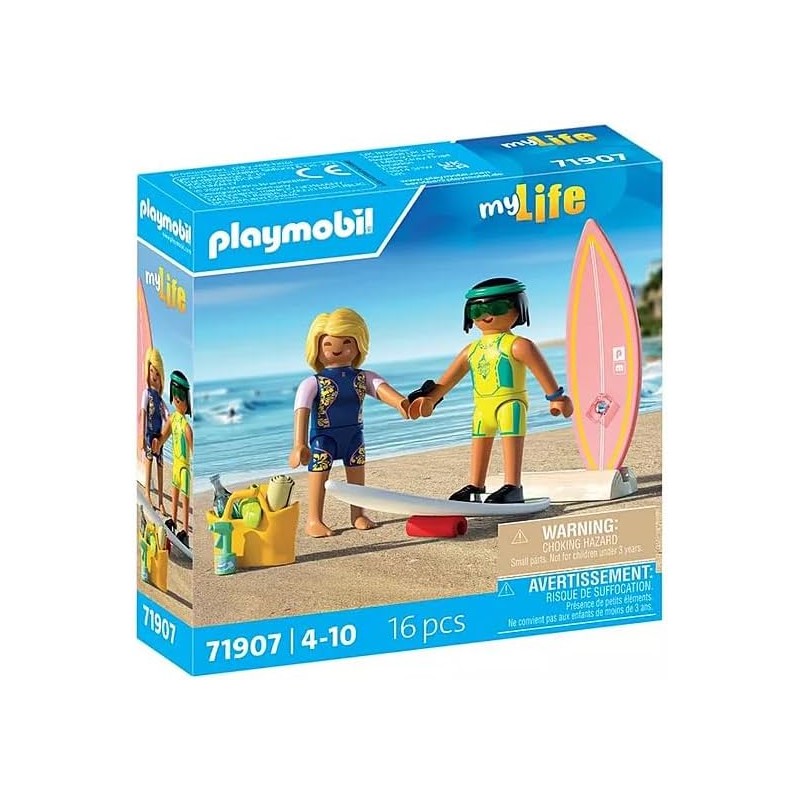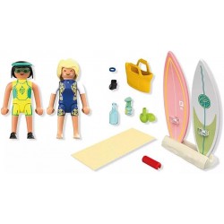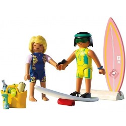 Contenido: Figuras: 1 hombre con gafas de sol y cinta para la cabeza, 1 mujer; Accesorios: 2 tablas de surf, 1 soporte para tablas de surf, 1 rollo para entrenamiento de surf, 1 bolsa de playa con toalla y botellas