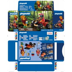 Figuras: 1 piloto de carreras Accesorios: 1 casco, 2 protectores de brazos, 1 quad todoterreno, 1 mástil de bandera, 1 mapa, 1 panel informativo, 1 prismáticos, 1 vaso, 1 tubo, 1 llave de estrella, 1 planta