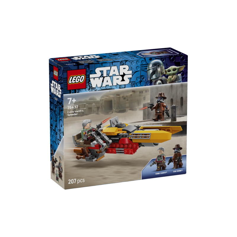 Forma equipo con Cobb Vanth para luchar contra Cad Bane en este emocionante set de construcción LEGO® Star Wars™ de un vehículo de juguete para niños y niñas (75437). Crea un detallado modelo LEGO del alucinante speeder de Cobb Vanth que aparece en la temporada 2 de Star Wars: The Mandalorian™. Tiene un asiento para la minifigura LEGO de Cobb Vanth, un conector para su pistola y un compartimento oculto para guardar accesorios, como el casco de Boba Fett y un cartón de leche de Bantha. La minifigura LEGO de Cad Bane incluida está equipada con 2 pistolas bláster, y Cobb también cuenta con una mochila propulsora. Un regalo estupendo para peques y cualquier fan de Star Wars: The Mandalorian o Star Wars: Boba Fett™ a partir de 7 años, este juguete de construcción es perfecto para despertar su imaginación a través del juego. Los peques podrán disfrutar de una fantástica experiencia de construcción con la app LEGO Builder, que les ofrece intuitivas instrucciones 3D. Contiene 207 piezas.