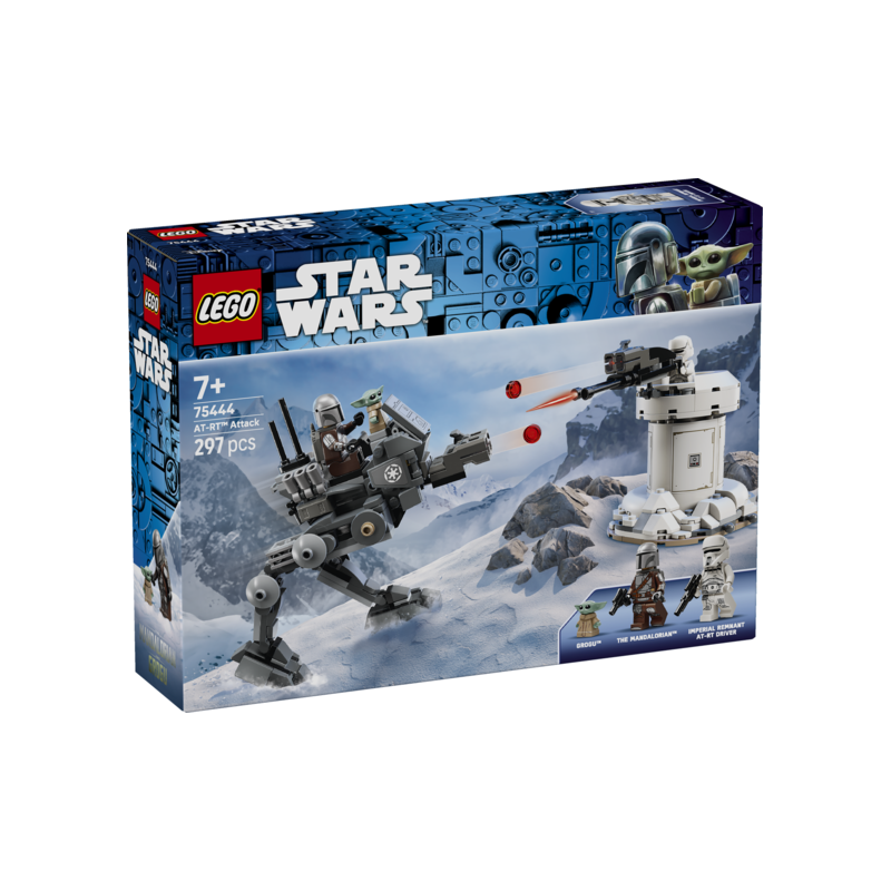 ¡Anima a tu peque a crear sus propias aventuras de Star Wars: The Mandalorian and Grogu™ con el set de construcción Ataque del AT-RT (75444)! Incluye un caminante AT-RT articulado con cañón doble, así como una torre defensiva con torreta giratoria y cañón doble también. Coloca la minifigura LEGO® del piloto de AT-RT del Remanente Imperial o del Mandaloriano en el asiento del AT-RT (retira un ladrillo del tablero de mandos para hacer sitio a la figura LEGO de Grogu). Abre la torre: hay un armero y espacio de almacenamiento. Equipa al Mandaloriano con la mochila propulsora y la pistola bláster, y al piloto de AT-RT con un bláster para aportar más acción a tus batallas. Este juguete, un regalo lleno de fantasía y aventuras para niños, niñas y fans de Star Wars: The Mandalorian and Grogu a partir de 7 años, es perfecto para estimular su imaginación. Los peques podrán construir con confianza siguiendo las sencillas instrucciones digitales de la app LEGO Builder. El set contiene 297 piezas.