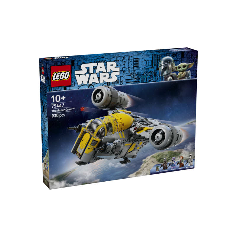 Despega hacia emocionantes batallas con el juguete de construcción LEGO® Star Wars™ The Razor Crest™ (75447). Recrea la emblemática nave estelar con el mismo diseño y la misma llamativa combinación de colores que presenta en Star Wars: The Mandalorian and Grogu™. Accede fácilmente al interior de este vehículo de Star Wars para jugar con las minifiguras LEGO del Mandaloriano, la Coronel Ward, Zeb Orrelios y un soldado de asalto del Remanente Imperial, así como con la figura LEGO de Grogu. Quita la cubierta de la cabina, abre los paneles laterales para ver el motor y la bodega de carga, y despliega las rampas. Un regalo sensacional para niños, niñas y fans de Star Wars: The Mandalorian and Grogu a partir de 10 años, este set incluye también el bláster E-Web de centinela del soldado de asalto, la mochila propulsora del Mandaloriano y más accesorios. Los peques podrán construir el set con confianza siguiendo las sencillas instrucciones digitales de la app LEGO Builder. Contiene 930 piezas.