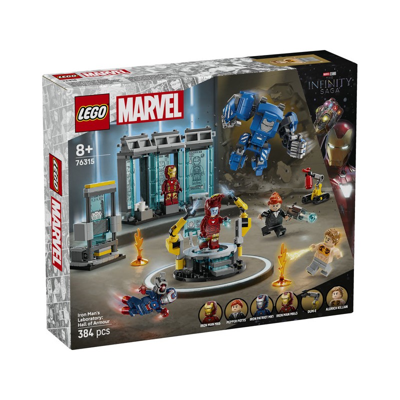 El set de construcción Laboratorio de Iron Man: Sala de Armaduras (76315) lleva a los jóvenes superhéroes y los fans de las películas de la saga Marvel Vengadores al emblemático laboratorio de Iron Man. Este set para construir, jugar y exponer, con figuras LEGO® ǀ Marvel y asombrosas características para inspirar imaginativas aventuras, es un regalo ideal para niños y niñas a partir de 8 años.