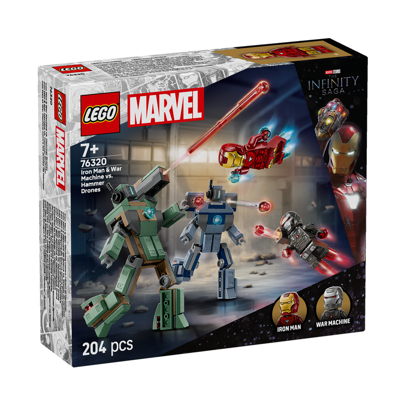 LEGO® Marvel 76320 - Iron Man y Máquina de Guerra vs. Drones de Hammer