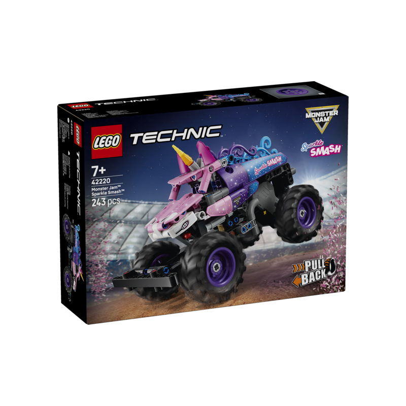 ¡Recrea las trepidantes competiciones de Monster Jam™ en este camión de juguete con motor de carga manual para peques a partir de 7 años! Usa la fantástica función de carga manual para lanzar tu Sparkle Smash™ (42220) a toda velocidad y, después, recrea las asombrosas acrobacias que realiza el de verdad. Este camión monstruo con estética de unicornio lleva detalles inspirados en el diseño del Sparkle Smash original, como las centelleantes estrellas y el cuerno del animal fabuloso. Este juguetede construcción es ideal para hacer un regalo divertido a niños, niñas y amantes de los vehículos LEGO®, los unicornios, los coches de carga manual y la emoción de los alucinantes espectáculos de Monster Jam. Los sets LEGO Technic reproducen mecanismos y movimientos de forma realista para ayudar a los jóvenes constructores LEGO a adentrarse en el universo de la ingeniería de un modo accesible y práctico. Además, la app LEGO Builder les permite construir con confianza. El set contiene 243 piezas.