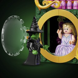 Un artístico regalo para mujeres, hombres y cualquier fan adulto de Wicked, permite recrear en formato 3D inolvidables escenas de las películas. La vibrante pieza decorativa incluye famosos lugares, como Shiz University, Munchkinland y Emerald City. Ocultos en la obra, también encontrarás la burbuja de Glinda, el bosque mágico, un compartimento secreto para guardar 4 minifiguras LEGO (Dorothy Gale, Cowardly Lion, Scarecrow y Tin Man) y muchas otras sorpresas por descubrir.